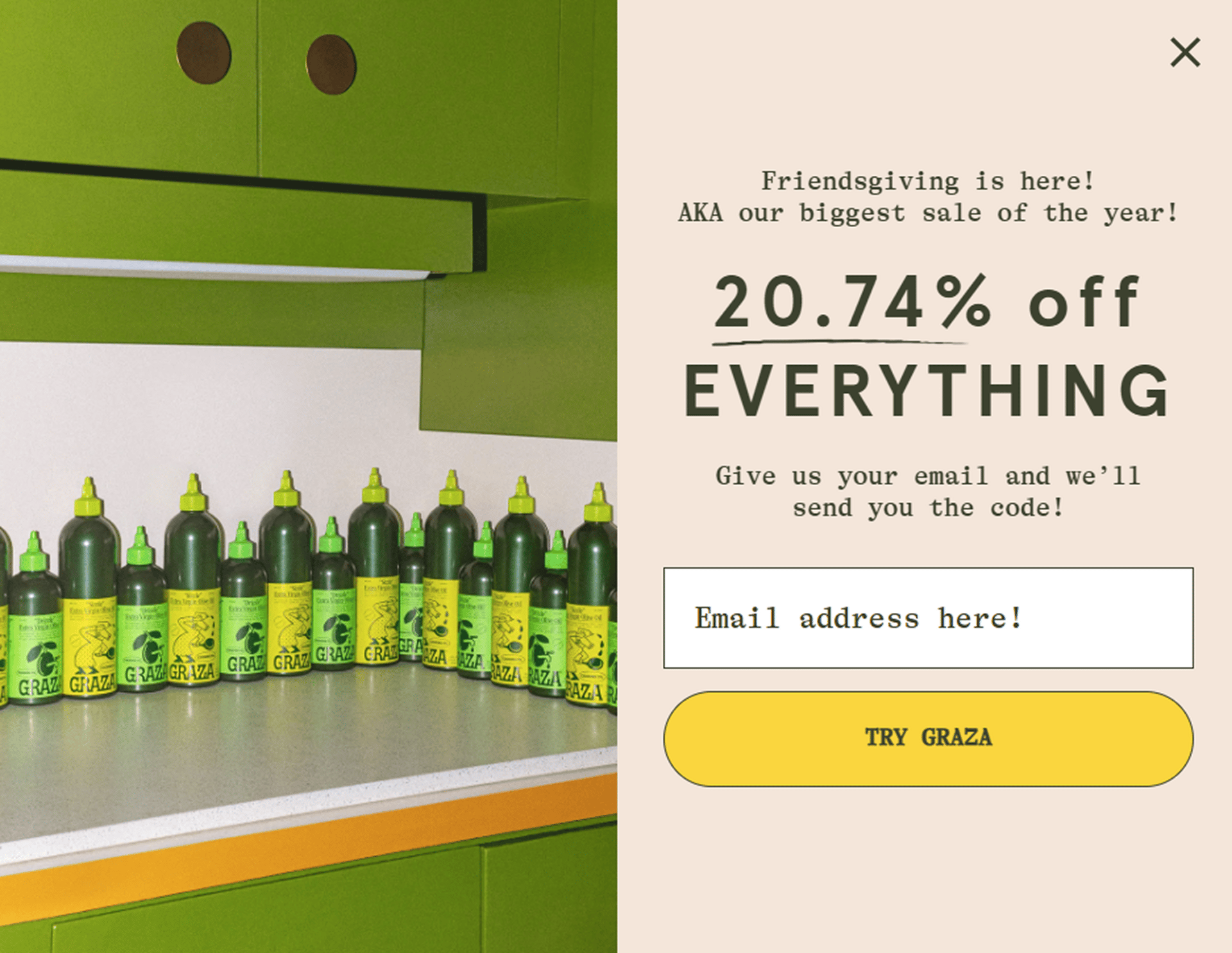 What a great way to stand out from the typical % off discount by giving 20.74% off.