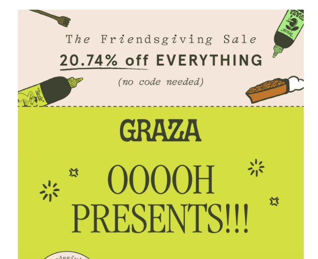 Example: I personally love when brands show me a “Best-Seller” or “Starter Bundle” that has the gift I want to give in it. If you send me personalized recommendations like this that make my gifting easy, I’m much more likely to purchase. You just made my life so easy.
