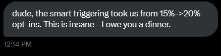 The head of growth at one of our 9-figure clients was so happy with it he DM’d me this: